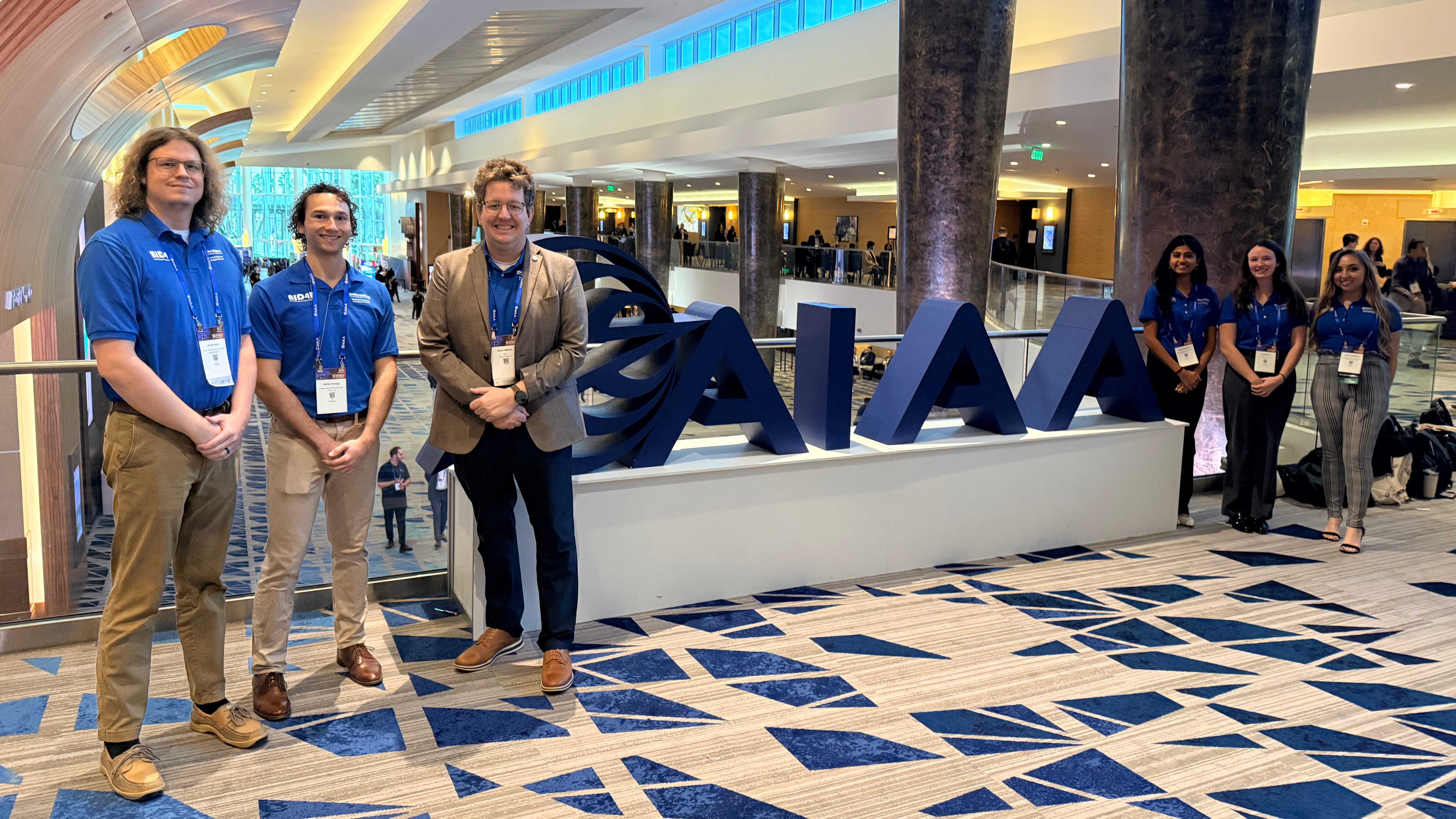 (Left to Right) James Hand, Nathan George, Dr. Bryan Watson, Spoorti Nanjamma, Ava Neubert, and Christine Sessions at AIAA SciTech 2026